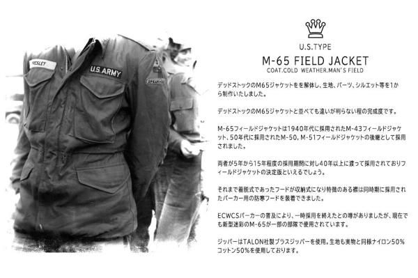 ¡Öº£²óÆþ²Ùʬ¤è¤ê¡¢¤è¤ê¼Âʪ¤ËÃé¼Â¤Ë¶á¤Å¤±¤ë°Ù¡¢¥Ç¥Ã¥É¥¹¥È¥Ã¥¯¤ÎM65¥¸¥ã¥±¥Ã¥È¤ò¤ò²òÂΤ·¡¢À¸ÃÏ¡¢¥Ñ¡¼¥Ä¡¢¥·¥ë¥¨¥Ã¥ÈÅù¤ò1¤«¤é¸«Ä¾¤·¡¢ºî¤êľ¤·¤Þ¤·¤¿¡£¥Ç¥Ã¥É¥¹¥È¥Ã¥¯¤ÎM65¥¸¥ã¥±¥Ã¥È¤Èʤ٤Ƥâ°ã¤¤¤¬È½¤é¤Ê¤¤Äø¤Î´°À®Å٤Ǥ¹¡£ M-65¥Õ¥£¡¼¥ë¥É¥¸¥ã¥±¥Ã¥È¤Ï1940ǯÂå¤ËºÎÍѤµ¤ì¤¿M-43¥Õ¥£¡¼¥ë¥É¥¸¥ã¥±¥Ã¥È¡¢50ǯÂå¤ËºÎÍѤµ¤ì¤¿M-50¡¤M-51¥Õ¥£¡¼¥ë¥É¥¸¥ã¥±¥Ã¥È¤Î¸å·Ñ¤È¤·¤ÆºÎÍѤµ¤ì¤Þ¤·¤¿¡£Î¾¼Ô¤¬5ǯ¤«¤é15Ç¯ÄøÅ٤κÎÍÑ´ü´Ö¤ËÂФ·40ǯ°Ê¾å¤ËÅϤäƺÎÍѤµ¤ì¤Æ¤ª¤ê¥Õ¥£¡¼¥ë¥É¥¸¥ã¥±¥Ã¥È¤Î·èÄêÈǤȤ¤¤¨¤ë¤Ç¤·¤ç¤¦¡£¤½¤ì¤Þ¤ÇÃåæ¼°¤Ç¤¢¤Ã¤¿¥Õ¡¼¥É¤¬¼ýǼ¼°¤Ë¤Ê¤êÆÃħ¤Î¤¢¤ë¶ß¤ÏƱ»þ´ü¤ËºÎÍѤµ¤ì¤¿¥Ñ¡¼¥«¡¼ÍѤÎËÉ´¨¥Õ¡¼¥É¤òÁõÃå¤Ç¤¤Þ¤·¤¿¡£ ECWCS¥Ñ¡¼¥«¡¼¤ÎÉáµÚ¤Ë¤è¤ê¡¢°ì»þºÎÍѤò½ª¤¨¤¿¤È¤Î±½¤¬¤¢¤ê¤Þ¤·¤¿¤¬¡¢¸½ºß¤Ç¤â¿··¿Ìº̤ΣÍ-£¶£µ¤¬°ìÉô¤ÎÉôÂâ¤Ç»ÈÍѤµ¤ì¤Æ¤¤¤Þ¤¹¡£ Åö¼Ò¤ÎÀ½ÉʤϼÂʪ¤è¤ê¤âÃ徿¤òû¤¯¤·¤Æ¤ª¤ê¡¢¡Ê¥µ¥¤¥ºÉ½¼¨¤Ï¥ì¥®¥å¥é¡¼¾æ¤Ç¤¹¤¬¡¢¥·¥ç¡¼¥È¾æÁêÅö¤ÎÃ徿¤Ç¡¢Âµ¾æ¤Ï¥ì¥®¥å¥é¡¼¥ì¥ó¥°¥¹¤Ç¤¹¡£¡Ë¼Âʪ¤è¤ê¾®¤µ¤á¤Î¤¤ê¤Ë¤Ê¤Ã¤Æ¤¤¤Þ¤¹¡£¥¸¥Ã¥Ñ¡¼¤ÏTALON¼ÒÀ½¥Ö¥é¥¹¥¸¥Ã¥Ñ¡¼¤ò»ÈÍÑ¡£À¸ÃϤâ¼Âʪ¤ÈƱÍͥʥ¤¥í¥ó50¡ó¡¢¥³¥Ã¥È¥ó50¡ó¤ò»ÈÍѤ·¤Æ¤ª¤ê¤Þ¤¹¡£¡× ¿ÈÉý/Ã徿/¸ªÉý/µ¾æ¡¡ S 55cm/71cm/52cm/62cm M 57cm/73cm/55cm/65cm L 62cm/75cm/57cm/66cm XL 65cm/77cm/59cm/68cm Â礤µ¤Ï¿¾¯¸íº¹¤¬¤¢¤ê¤Þ¤¹¡£ ¢¨²èÁü¤Î¾¦Éʤϥµ¥ó¥×¥ë¤Ç¤¹¡£¼ÂºÝ¤Î¾¦ÉʤǤϡ¢»ÅÍÍ¡¦²Ã¹©Åù¼ã´³°Û¤Ê¤ë¾ì¹ç¤¬¤´¤¶¤¤¤Þ¤¹¡£ ¡ÚÃí°Õ»ö¹à¡Û ¡¦¼ÂŹÊޤȺ߸ˤò¶¦Í¤·¤Æ¤¤¤ë¤¿¤á¡¢Ãíʸ¤Î¥¿¥¤¥ß¥ó¥°¤Ë¤è¤êÇä¤êÀÚ¤ì¤È¤Ê¤Ã¤Æ¤·¤Þ¤¦¾ì¹ç¤¬¤´¤¶¤¤¤Þ¤¹¡£ ¤ªµÒÍͤΤ´Í÷¤Ë¤Ê¤Ã¤Æ¤¤¤ë´Ä¶¤Ë¤è¤ê¾¦Éʤ理¬°ã¤¦¾ì¹ç¤¬¤´¤¶¤¤¤Þ¤¹¡£ ¤´Î»¾µ¤¯¤À¤µ¤¤¡£